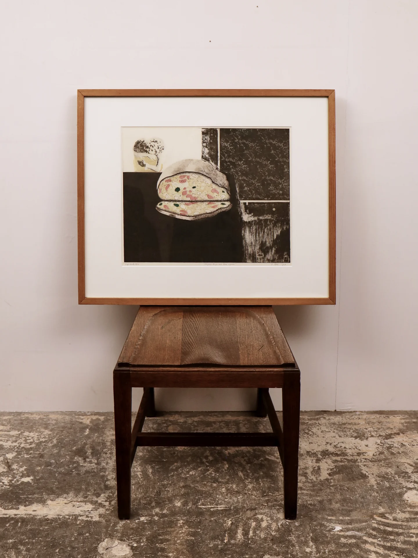 Artist signed in pencil below the image: 'eigendruk 10/25' (lower left), "'Happy days are here again'" (centre) and signed 'P Bes '73' (lower right).