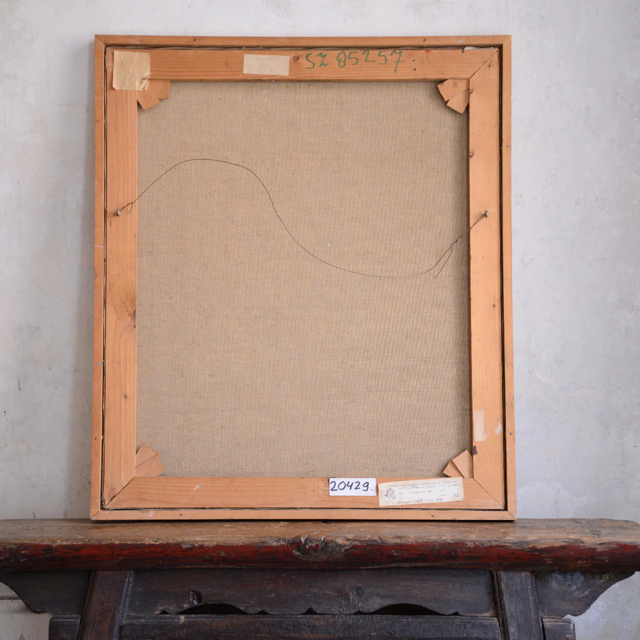 Presented in its original simple wood strip frame. The canvas and heavily impastoed paint surface are in excellent, stable condition. The frame has various historic worn and painted surfaces.Â
